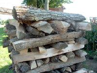 | “Log Pile Moving 5 JPG” © Colin Winn. Stacked log-ends close up. Bright sun. |