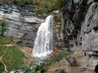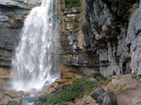 | “Herreson 16” 10-04 © Colin Winn. Closer view of base of final cascade, Herreson, Burgundy, with viewers under rocks leading up to Falls. |
