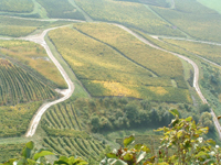 | “Chateau Chalon 6” 10-04 © Colin Winn. Elevated view of Chateau Chalon vineyards in Autumn colours. Slight haze. |